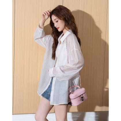 唐狮2025夏季新款女净色宽松微弹韩系单排扣翻领长袖衬衫韩系潮流
