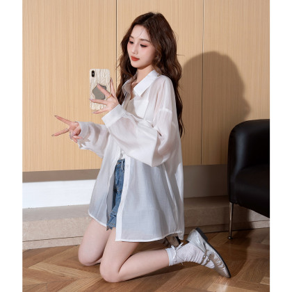 唐狮2026夏季新款女衬衫翻领宽松净色韩系简约纽扣长袖衬衫韩系