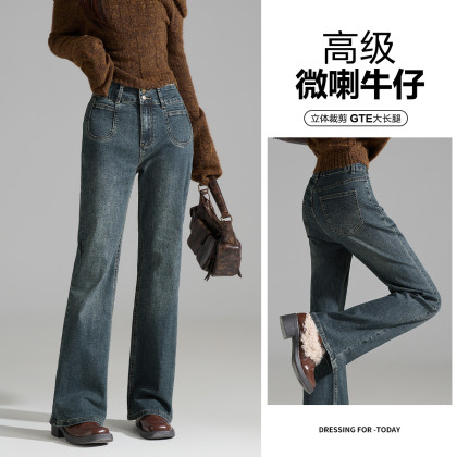 唐狮2026秋季新款女牛仔裤遮肉显瘦高腰微喇叭裤减龄韩版拖地裤