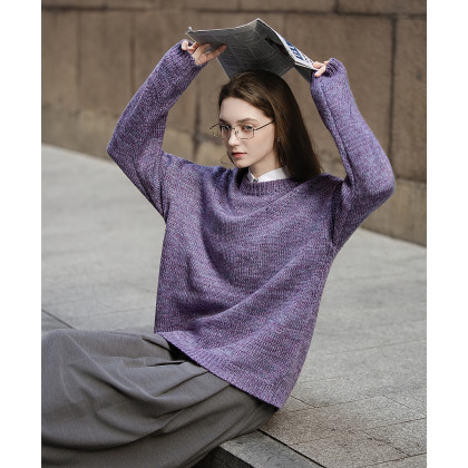唐狮2026秋冬季毛衣女圆领净色紫色复古超好看花纱气质时尚毛线衫