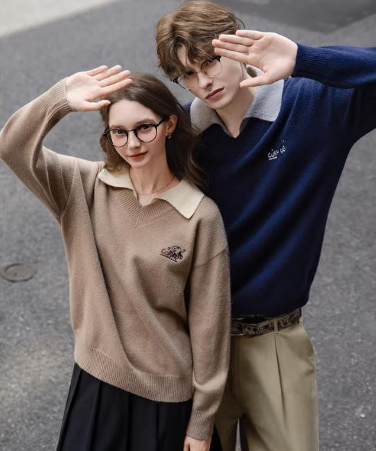 【史努比联名款】唐狮2026秋冬季情侣款假两件左胸绣花翻领毛线衫