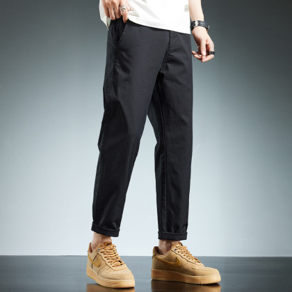 唐狮25秋季新款男士休闲长裤梭织宽松小直筒简约休闲风通勤黑色W