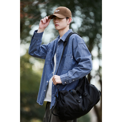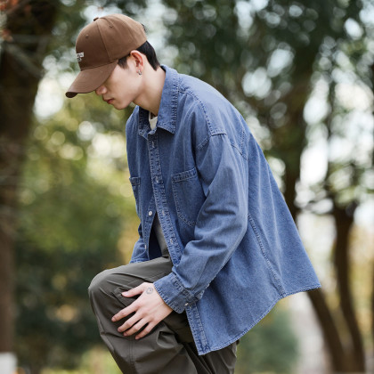 唐狮春秋季新款牛仔长袖衬衫男高级感日系休闲宽松百搭衬衣外套TJ