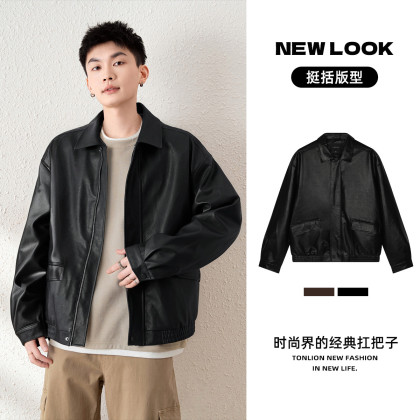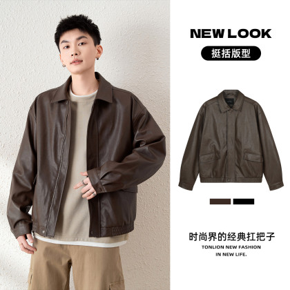 (小灯塔)唐狮2025秋季新款PU皮衣男外套美式夹克宽松时尚机车