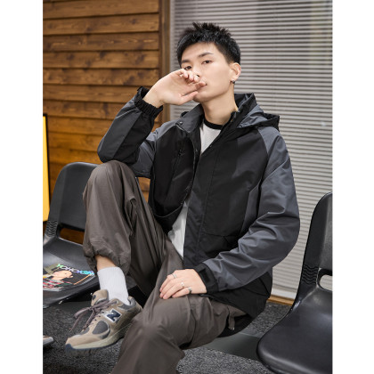 唐狮2026秋季男款连帽撞色拼接梭织外套休闲百搭户外运动外套时尚
