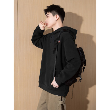 唐狮2026秋季新款男卫衣连帽休闲情侣男左胸爱心图案印花连帽卫衣