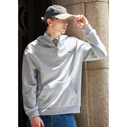 唐狮2026春秋季新款半开襟连帽卫衣男字母刺绣简约设计时尚百搭潮