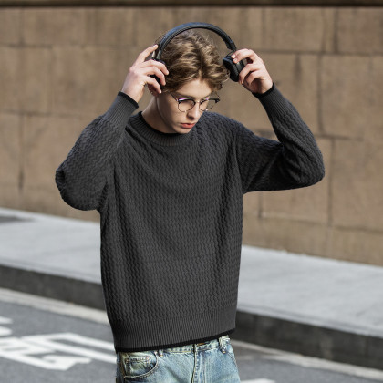 唐狮秋冬季新款麻花毛衣男士复古青少年慵懒风圆领针织毛衫潮
