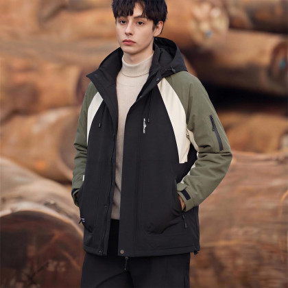 唐狮2026秋冬季短款工装羽绒服男连帽撞色拼接潮流百搭简约设计感