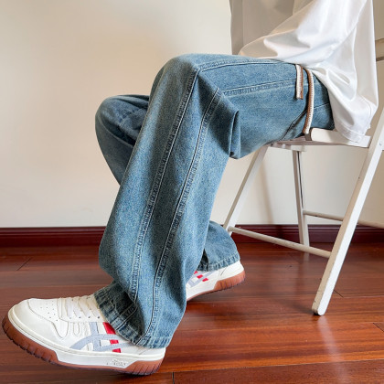 唐狮2026秋冬新款男牛仔长裤宽松侧边直筒裤美式复古潮流牛仔