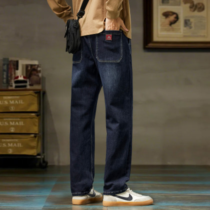 唐狮2026秋季男士牛仔长裤原色抽绳直筒阔腿裤帅气宽松潮牌美式