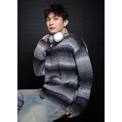 唐狮2025秋冬季毛衣男圆领套头渐变粗纹肌理毛织毛线衫百搭