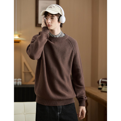 唐狮2026新款秋季毛衣男圆领插肩袖粗肌理慵懒风宽松休闲毛线衫