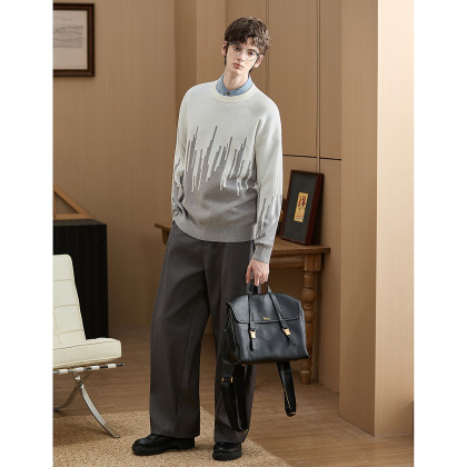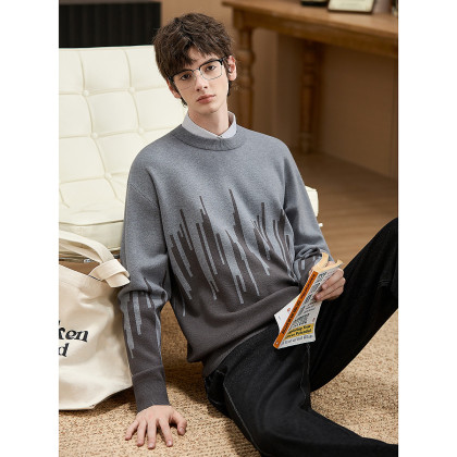 (小灯塔勿上)唐狮2025新款秋冬季毛衣男士圆领套头撞色拼接灰色