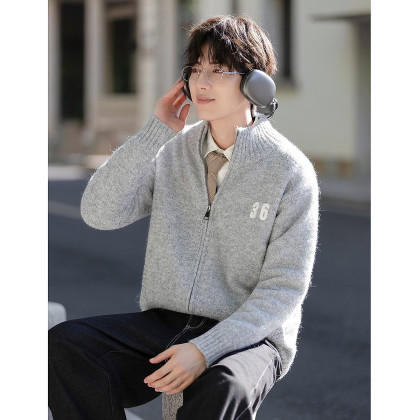 唐狮2026秋冬季男士毛衣外套立领绣花简约风开衫毛线衫潮流时尚