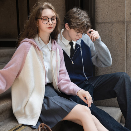 唐狮2026秋冬季情侣款毛衣插肩袖设计连帽针织开衫潮流毛线衫时尚