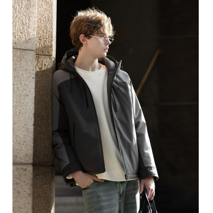 唐狮2026秋冬季短款棉衣男连帽拼接超酷冲锋少年上衣夹克宽松休闲
