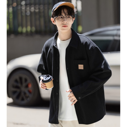 唐狮2025秋冬新款男长袖衬衫翻领口袋小标灯芯绒初秋外套通勤休闲