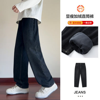 唐狮2026秋冬季牛仔长裤直筒男宽松显瘦加绒黑灰色韩系牛仔裤男裤