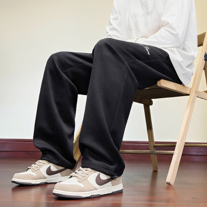 唐狮2025秋冬季针织加绒长裤简约宽松美式直筒休闲裤男生显瘦显高
