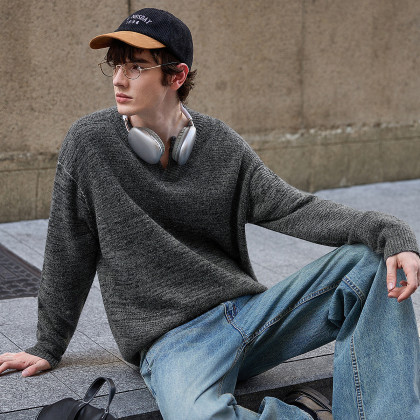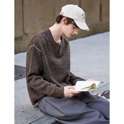 唐狮2026秋季新款圆领毛线衫男士慵懒风小众设计感潮流百搭时尚