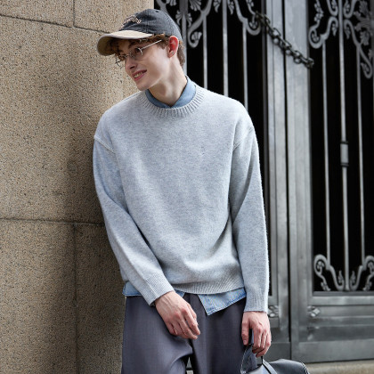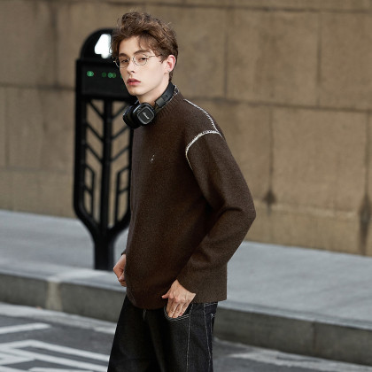 唐狮2026秋季毛衣男圆领套头黑色撞色时尚宽松潮流毛线衫休闲上衣