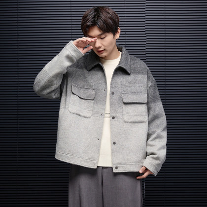 唐狮2025秋冬季男毛呢外套厚外套保暖翻领渐变夹克潮酷百搭时尚
