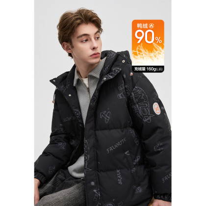唐狮2026冬季男短款羽绒服连帽满印卡通风涂鸦超酷百搭时尚保暖