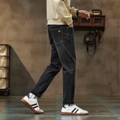 唐狮2026秋冬季牛仔长裤男口款小脚裤美式复古做旧黑灰色男裤潮流