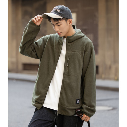 唐狮2025春秋冬季新款摇粒绒外套男连帽通勤男士夹克外套休闲保暖