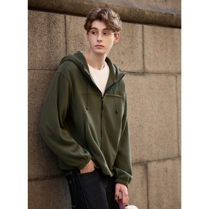 唐狮2026秋冬季摇粒绒外套男连帽保暖加厚短款百搭秋冬加厚外套男