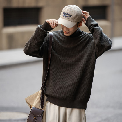 唐狮2026秋冬季新款毛衣男高领净色肌理毛线衫打底毛衣时尚简约风