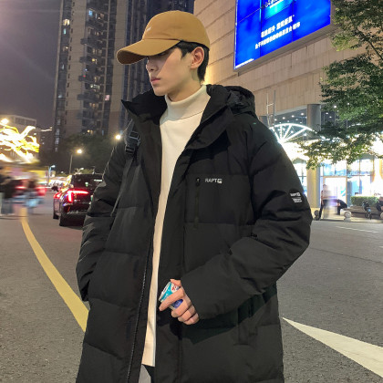 唐狮2026冬季男连帽中长款羽绒服保暖连帽百搭时尚灰色羽绒外套