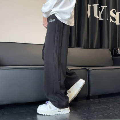 唐狮秋冬季新款男休闲裤撞色条纹运动卫裤宽松直筒裤子潮流W