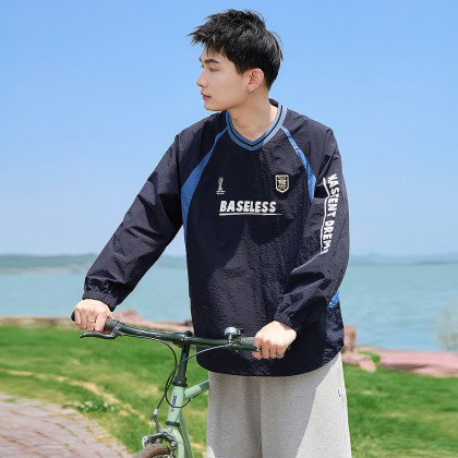 唐狮2025春夏新款男长袖T恤薄款撞色拼接上衣插肩袖内搭打底衫潮