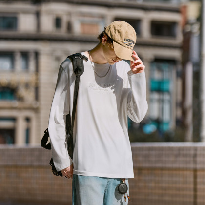 唐狮2026春秋新款白色长袖T恤男纯棉百搭宽松简约打底衫上衣服潮t