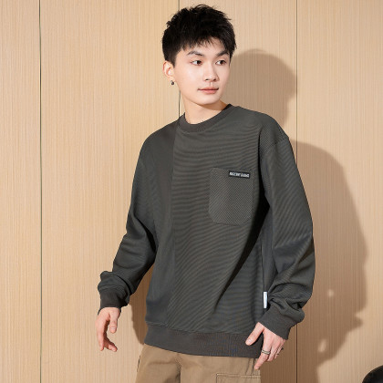 唐狮春季新款男卫衣圆领宽松灰色上衣商务休闲百搭青少年潮流