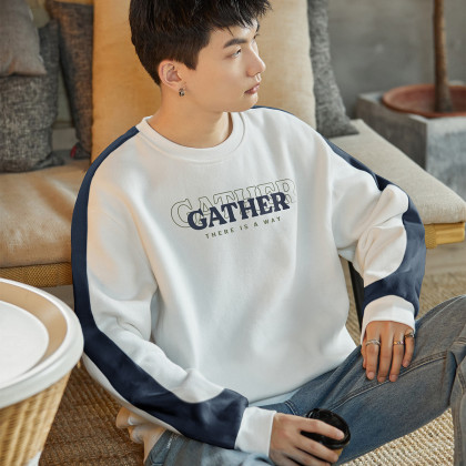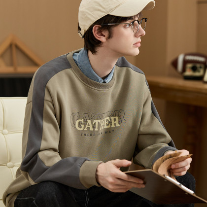 唐狮2025春秋季新款圆领卫衣男宽松撞色拼接插肩袖青少年上衣潮流