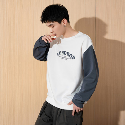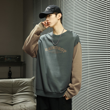 唐狮2026春秋季新款圆领卫衣男宽松撞色拼接插肩袖青少年上衣潮流