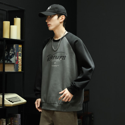 唐狮春秋季新款圆领卫衣男宽松撞色拼接插肩袖青少年上衣潮流