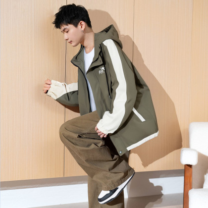 唐狮2026秋季新款男连帽外套拼接撞色工装上衣户外冲锋少年夹克潮