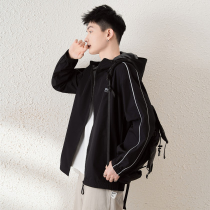 唐狮2026秋季新款男连帽外套黑色简约工装上衣冲锋少年夹克上衣潮