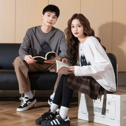 唐狮春季新款情侣T恤纯棉设计感字母印花百搭白色上衣小众