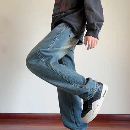 唐狮2026男款牛仔裤宽松长裤绣花设计感美式复古高街长裤子潮流