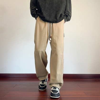 唐狮2026春秋季男士休闲裤宽松直筒长裤潮流卡其色设计感显瘦时尚
