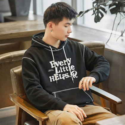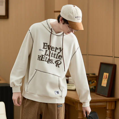 唐狮2026新款秋季男连帽卫衣男款大字母印花车明线独特设计感美式
