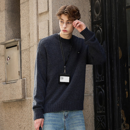 唐狮2026秋冬季毛衣男圆领套头设计感简约时尚慵懒风高级感毛线衫