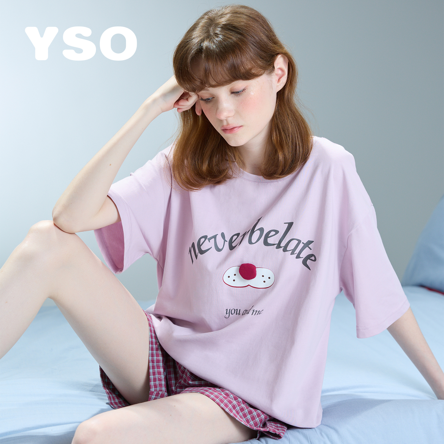 yso【酷猫系列】睡衣女夏套装短袖套头休闲简约高级感可外穿套装B