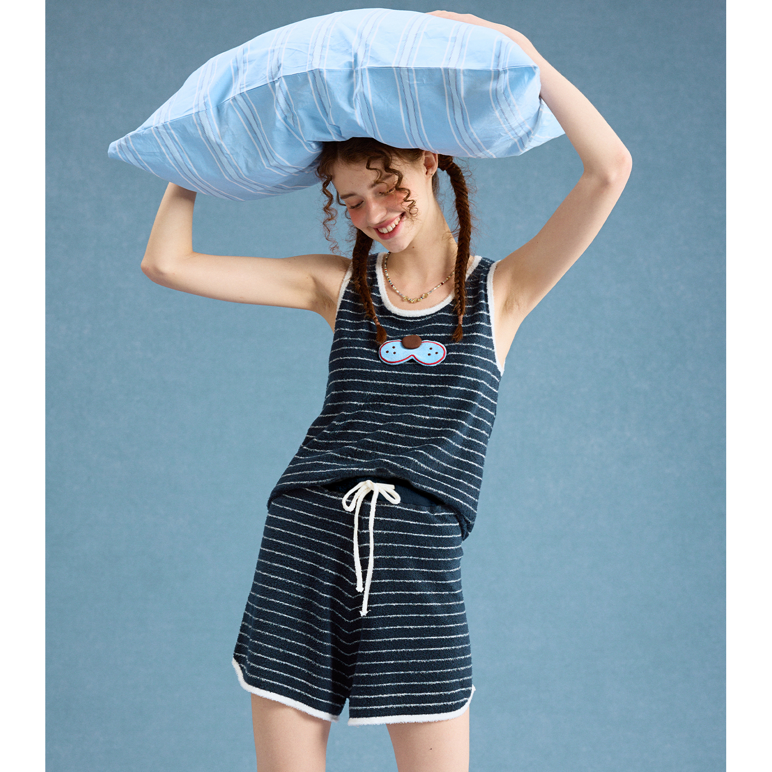 yso【酷猫系列】睡衣女夏条纹吊带休闲居家短裤可外穿家居服套装B