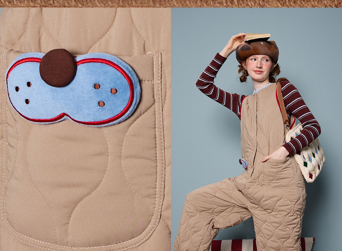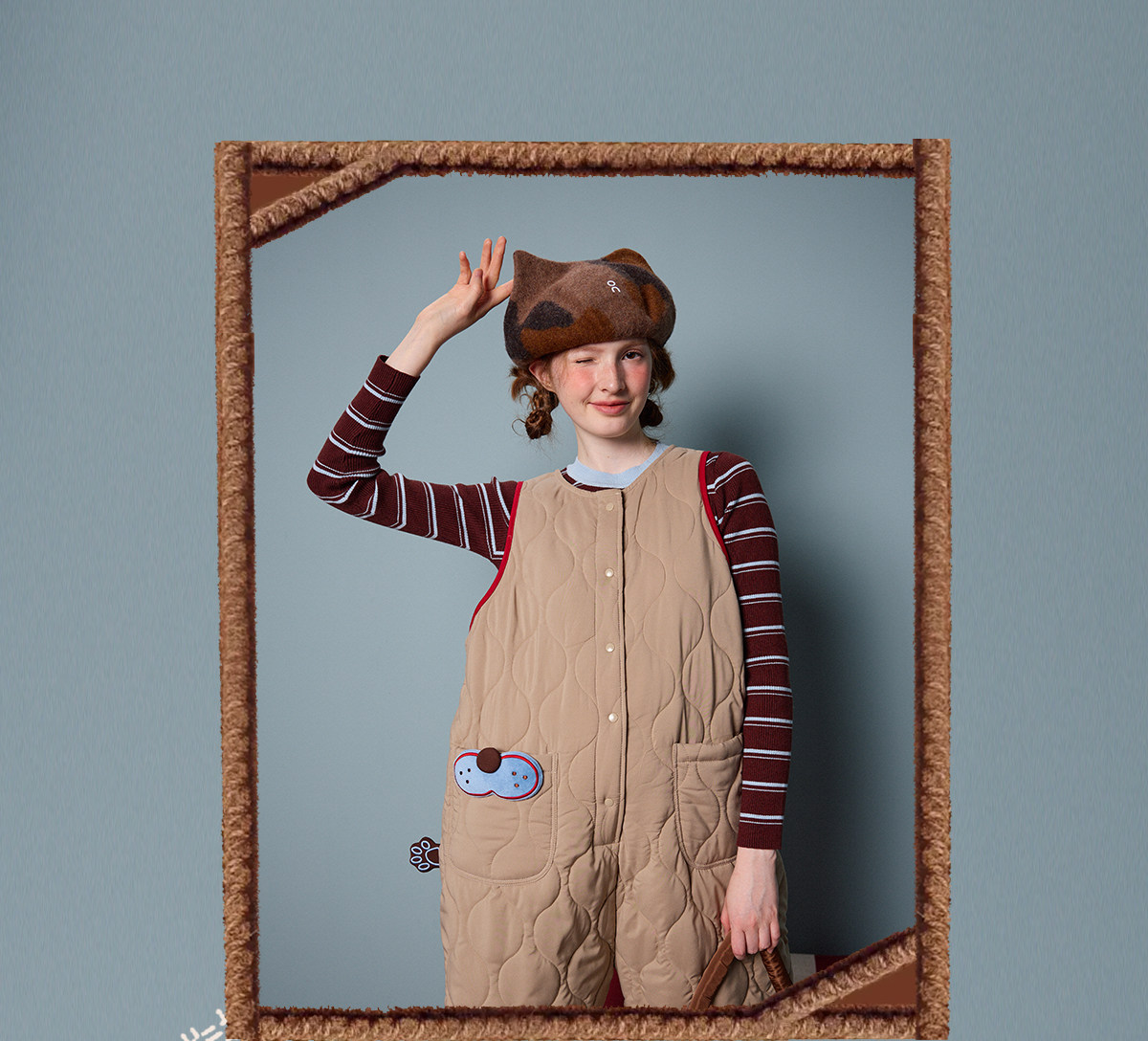 yso【酷猫系列】睡衣女秋冬新款工装夹棉背心款连体家居服连体衣D